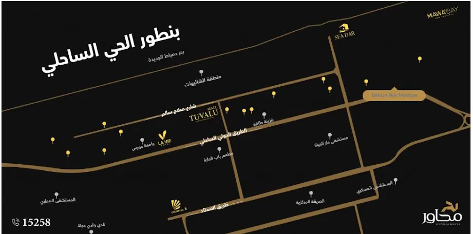 مشروع القطعة 69 BB المساحة: 515 متر مربع يقع المشروع على إطاللة رائعة على مسطح أخضر بمساحة شاسعة مقابل شارع البحر بالقرب من بنزينة طاقة ومنطقة النوادي